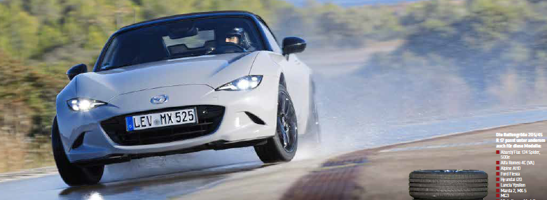 En su número 4/2026, la revista alemana Sport Auto probó siete neumáticos de verano de tamaño 205/45 R 17 en un Mazda MX-5. La muestra incluyó una combinación de opciones premium deportivas, de turismo y económicas: Bridgestone Potenza Sport evo, Goodyear Eagle F1 Asymmetric 6, Falken Azenis FK520, Continental PremiumContact 7, Michelin Pilot Sport 5, Linglong Sport Master y Firestone Roadhawk 2. Los neumáticos fueron evaluados en pruebas de rendimiento en seco y mojado, así como en comodidad y eficiencia.